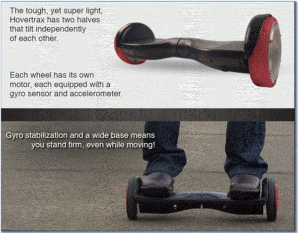 美国第8,738,278号名称为「具独立可动脚踏板之两轮式自平衡车」(two-wheel, self-balancing vehicle with independently movable foot placement sections),所主张发明为一种透过双脚摆动脚踏板来进行操控之两轮式自平衡车(或称漂移车),该平衡车具备智能化调速及自我平衡功能、轻便、透过充电提供驱动所需电力,具有左右两个车轮及中间一个踏板位,由使用者利用双脚向前或向后用力来进行加速或减速,并透过身体重心倾向来控制转弯。